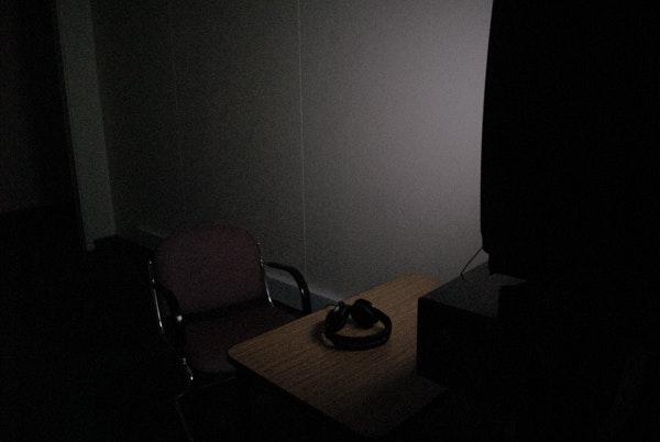 The film was presented as a single screen video installation in a small, dark room. The viewer was asked to enter alone, and stay there for as long or little time as they wished. Inside the room was a chair and table, upon which sat a TV displaying the video on a loop, a pair of headphones and writing materials. Viewers were asked to answer a series of questions, and provide any other comments anonymously. The feedback accrued from this process informed the project’s next phase and the following pieces, Gaze II and III.